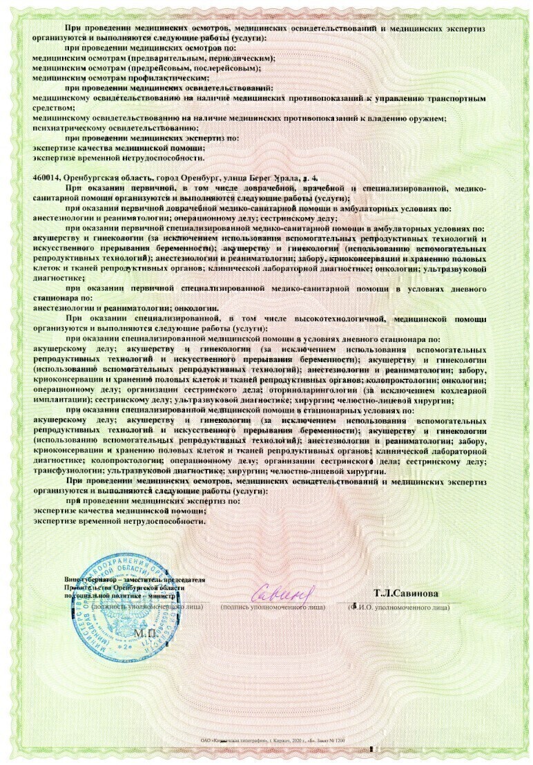 Проводит диагностику и составляет план лечения выявленных заболеваний женских репродуктивных органов и мочеполовой системы. Занимается лечением инфекционных, вирусных, воспалительных патологиях, гормональных нарушениях. Специализируется на планировании и ведении беременности, родов и послеродовом сопровождении. Консультирует женщин в вопросах подбора контрацептивных препаратов, а также в период менопаузы.